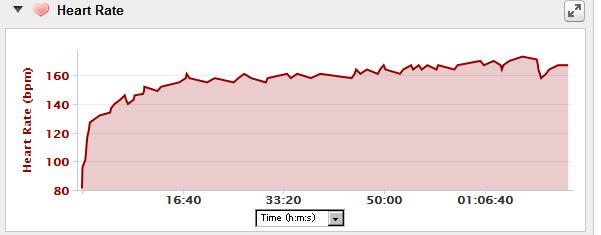 65分間 ケイデンス 58〜62rpm HR Ave.161bpm MAX 173bpm